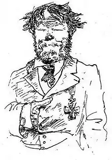 ![]() Michael Wagmüller en 1878, caricatura de Friedrich August von Kaulbach. | ||