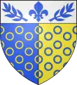 | Blasón: Partido de azul y oro cubierto con anillos de uno a otro y de uno en otro, al jefe de plata cargado con una flor de lis con dos ramas de olivo, todo de azul.