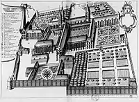 Vista de la abadía de Saint Germain, en Monasticon Gallicanum.