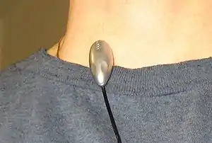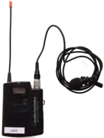 El cable por el que se conectan con el equipo de transmisión de la señal captada puede esconderse entre la ropa. Son frecuentes los micrófonos de este tipo que incorporan un radiotransmisor (conocido coloquialmente como petaca) que se coloca en un bolsillo o se prende en un cinturón.