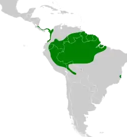 Se encuentra en Bolivia, Brasil, Colombia, Costa Rica, Ecuador, la Guayana, Guyana, Panamá, Perú, Surinam y Venezuela.[1]