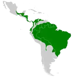 Esta especie de halcón fue descrita para la ciencia en el año 1817 por el ornitólogo francés Louis Jean Pierre Vieillot. Se pueden encontrar poblaciones estables en Argentina, Belice, Bolivia, Brasil, Colombia, Costa Rica, Ecuador, El Salvador, Guayana Francesa, Guatemala, Guyana, Honduras, México, Nicaragua, Panamá, Paraguay, Perú, Surinam y Venezuela.