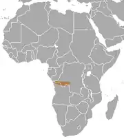 Se encuentra en Angola y República Democrática del Congo.