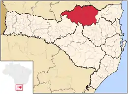 Microrregiones vecinas | Unión de la Vitória (PR), Son Mateus del Sur (PR), Lapa (PR), Río Negro (PR), Blumenau, São Bento del Sur, Río del Sur, Curitibanos y Joaçaba | |