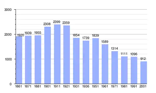Gráfica de evolución demográfica de Miglierina entre 1861 y 2001 |