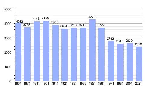 Gráfica de evolución demográfica de Miglionico entre 1861 y 2021 |