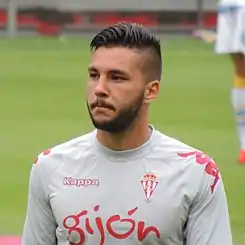 En la temporada 2011-12 fue fichado por el Real Sporting de Gijón "B".[5] Debutó con el primer equipo del Real Sporting de Gijón en Segunda División el 19 de agosto de 2012 en el Nuevo Estadio Los Pajaritos contra el C. D. Numancia de Soria.[6] El 9 de febrero de 2013 anotó su primer gol en la categoría ante el C. D. Lugo, en una victoria sportinguista por 1-2.[7] En la temporada 2014-15 consiguió un ascenso a Primera División[8] y acabó como el máximo goleador del equipo con once tantos.[9] Su debut en la máxima categoría se produjo en la primera jornada de la campaña 2015-16, en un partido frente al Real Madrid C. F. que finalizó 0-0.[10] Consiguió anotar su primer gol en la competición en la octava jornada durante un partido celebrado en el estadio El Molinón ante el Granada C. F. que terminó 3-3.[11]
