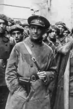 Muy amigo de los hermanos Galán, Francisco y José María,[6] hacia el 22 de julio de 1936 está como oficial de enlace de la columna republicana que actúa sobre Somosierra al mando del general Carlos Bernal.[7] Se afilia entonces al Partido Comunista de España,[6] y se convierte en uno de los instructores del 5.º Regimiento.[8]