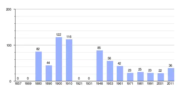 Gráfica de población de Miholašćica 1857-2011 |