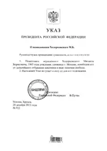 El 20 de diciembre de 2013 fue liberado por un indulto del presidente ruso Vladimir Putin. Vive en Londres desde 2015.[5]