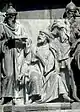 ![]() | Cristianización de la Rus | Крещение Руси | 988 | Vladimiro I, gran príncipe de Kiev, levantando una cruz ortodoxa. Junto a este hay una mujer que le presenta a su hijo en brazos para ser bautizado, y un hombre que derriba al dios pagano Perún. Composición en dirección sudoeste. |