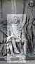 ![]() | Origen del Imperio ruso | Образование Российской империи | 1721 | Pedro el Grande con una corona de laurel y el cetro imperial en la mano derecha; un ángel lo señala hacia el lugar donde se encontrará la futura capital, San Petersburgo. Pedro I pisa con su pie izquierdo la capa de un hombre sueco que protege su bandera desgarrada, en alusión a la victoria rusa en la Gran Guerra del Norte. El grupo mira hacia el norte, hacia San Petersburgo. |