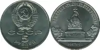 - El reverso de la moneda conmemorativa de la Unión Soviética de 5 SUR, acuñada el 12 de octubre de 1988.