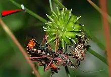 Los adultos de algunas especies rondan a depredadores, como arañas y miembros de la familia Reduviidae y se comportan como cleptoparásitos. Parecen alimentarse de los fluidos de la víctima.[7]