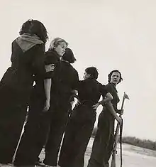 Las mujeres también vinieron del extranjero para luchar en las Brigadas Internacionales, con un número total documentado de entre 400 y 700 mujeres. Muchas viajaron primero a París, antes de llegar en barco o en tren para luchar.[7] Venían de países como Estados Unidos, Polonia, Francia, Unión Soviética, Suiza, Inglaterra, Noruega y Alemania.[26][27][28][29][30][31][32][33] Un acuerdo de 1937 diseñado para detener la intervención extranjera puso fin eventualmente al reclutamiento de las Brigadas Internacionales tanto de hombres como de mujeres.[7] Si bien las facciones nacionales del Partido Comunista apoyaron la llegada de extranjeros a España para luchar en la Guerra Civil en las Brigadas Internacionales, a menudo se opusieron a que vinieran sus afiliadas. Cuando a veces aceptaban enviar mujeres que se habían decidido a venir a España, a menudo éstas desempeñaban funciones de apoyo como reporteras o propagandistas. El aparato del partido en España trabajó enérgicamente para mantener a las mujeres alejadas del frente.[25]
