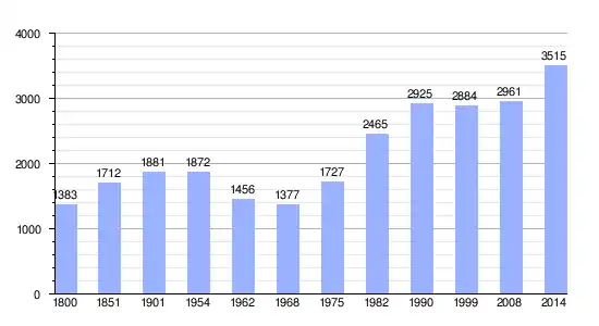 Gráfica de evolución demográfica de Milizac entre 1800 y 2014 |