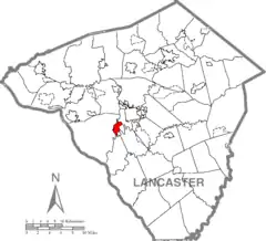 ![]() Ubicación en el condado de Lancaster ![]() Ubicación del condado en Pensilvania ![]() Ubicación de Pensilvania en EE. UU. | ||