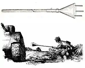 La carga hueca cónica iba unida a un asta de madera, empleada para sostener el arma durante su transporte y empleo. La mina tenía en su base tres patas simétricamente distribuidas. Su detonador estaba dentro del vértice del cono.[1]