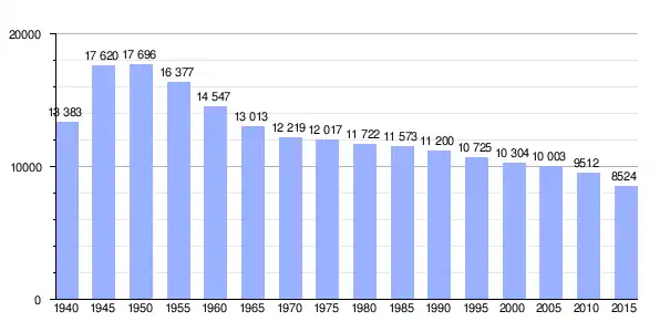 Gráfica de evolución demográfica de Minamiizu entre 1940 y 2015 |