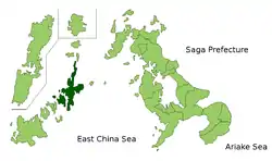 La ubicación del distrito Minamimatsuura en la prefectura de Nagasaki.