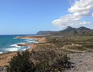 * Parque natural de Calblanque, Monte de las Cenizas y Peña del Águila. En la zona oriental de la Sierra Minera, desde Portmán hasta Cala Reona, se ha delimitado el espacio de Calblanque, Monte de las Cenizas y Peña del Águila, protegido con las categorías de parque natural y LIC (Lugar de Importancia Comunitaria).[57][58] Además, recientemente, se ha propuesto su declaración como reserva de la biosfera por la Unesco.[59]