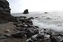 - Una muy antigua perteneciente al complejo nevado-filábride, originada durante el Paleozoico y compuesta por materiales metamórficos, micaesquistos principalmente. Aflora en forma de rocas de aspecto pizarroso muy oscuro en la zona más oriental de la sierra, en el entorno de Calblanque, Cala Reona y Cabo de Palos.[5]