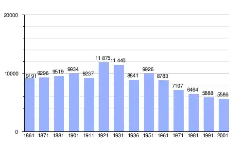 Gráfica de evolución demográfica de Mineo entre 1861 y 2001 |