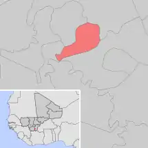 Se encuentra ubicada al suroeste del país, cerca del río Níger, al sureste de la capital nacional, Bamako, y cerca de la frontera con Burkina Faso y Costa de Marfil.