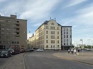 ![]() Sede del Ministerio de Educación y Cultura (edificio amarillo) construido en 1908 en Helsinki. | ||