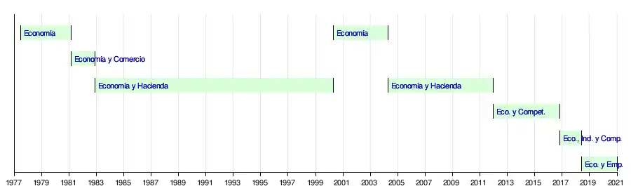 Ministerio de Economía y EmpresaMinisterio de Economía, Industria y CompetitividadMinisterio de Economía y CompetitividadMinisterio de Economía y Hacienda (2004-2011)Ministerio de Economía y Hacienda (1982-2000)Ministerio de Economía y ComercioMinisterio de Economía (2000-2004)Ministerio de Economía (1977-1981)