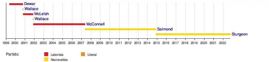 Donald Dewar | 13 de mayo de 1999 | 11 de octubre de 2000 | Laborista | Falleció en el cargo | |
