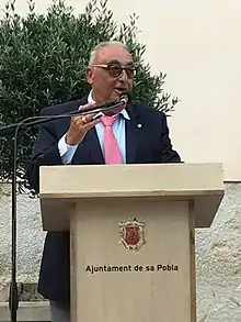 ![]() Miquel Segura Aguiló recogiendo el Escudo de Oro de La Puebla, el 14 de julio de 2017. | ||