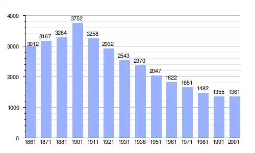 Gráfica de evolución demográfica de Mirabello Monferrato entre 1861 y 2001 |