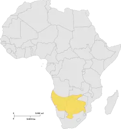 Puede ser encontrada en los siguientes países: Angola, Botsuana, Namibia, África del Sur, Zambia y Zimbabue.