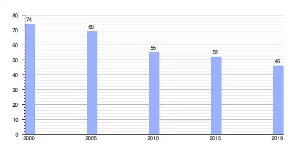 Gráfica de evolución demográfica de Miranda entre 2000 y 2019 |