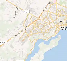 Este barrio limita al noroeste con el barrio de Puerta Sur y la Carretera Panamericana, al norte con el sector Cardonal, al sureste con Angelmó y al sur y suroeste con el sector Chinquihue. La ubicación del sector es en la tercera terrazas de la ciudad, y por lo tanto este tiene vista directa a la isla Tenglo, el seno de Reloncaví y la cordillera de Los Andes, como también al centro de la ciudad, por el este.