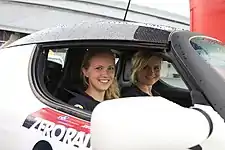 ![]() Miriam Walfridsson (al frente) con Ramona Karlsson durante el Rally Zero en 2011. | ||