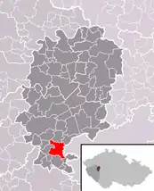Se encuentra ubicada al noreste de la región, en la cuenca hidrográfica del río Berounka —un afluente izquierdo del río Moldava que, a su vez, lo es del Elba—, y cerca de la frontera con la región de Bohemia Central.[1]