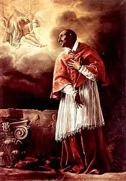 ![]() San Carlos Borromeo adorando a la Trinidad, de Orazio Borgianni, siglo XVII (Iglesia de San Carlo alle Quattro Fontane, Roma). | ||