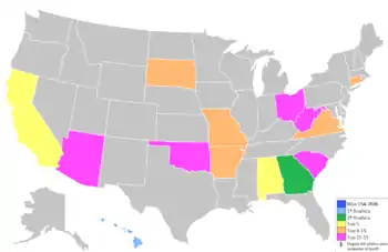 - Alabama, Arizona, Hawaii, Oklahoma y Virginia repiten clasificación a los cuartos de final.