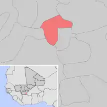Se encuentra ubicada al suroeste del país, cerca del río Níger, al sureste de la capital nacional, Bamako, y cerca de la frontera con Burkina Faso y Costa de Marfil.