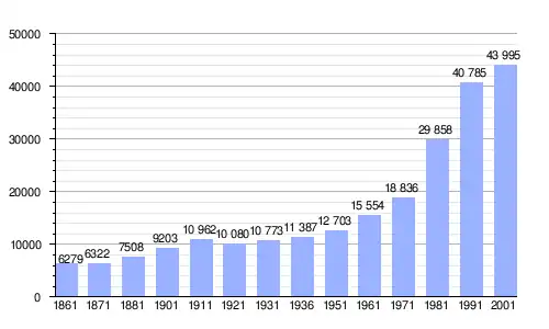 Gráfica de evolución demográfica de Misterbianco entre 1861 y 2001 |