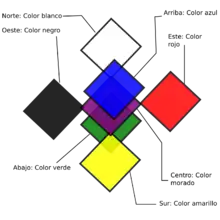 Dentro de la concepción wixarika existen cinco direcciones principales del universo, las cuales son representadas por sus correspondientes deidades femeninas: Tatei Rapawiyema, diosa madre del sur quien tiene su santuario en el Lago de Chapala y cuyo color es el amarillo; Tatei Jautze Kupuri, diosa madre del norte, su color es el blanco; Tatei Sakaimuka, diosa madre del oeste quien tiene su santuario en la costa de Nayarit y que es compañera de Tatei Kiewimuka que es diosa lluvia del oeste, su color es el negro; Tatei Uwiutali, diosa madre del oriente, cuyo color es el rojo y el centro donde yace el fuego Tatewari, su color es el morado, aunque también se consideran direcciones arriba y abajo, cuyas deidades tutelares son Tatei Wexika Wimari (Diosa madre águila, esposa de Tau el sol) para arriba que tiene como color al azul y Tatewari (Dios del Fuego, pareja de Nakawe la tierra) para abajo que tiene como color el verde.