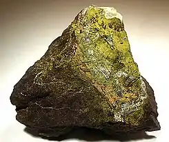 ![]() Mitridatita sobre purpurita.Mina Pack distrito de Jacumba, San Diego, California, USA | ||