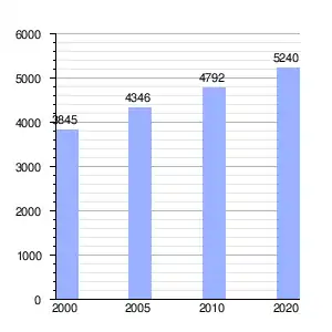 En 2020 el 47.1% de la población (2467 personas) eran hombres y el 52.9% (2773 personas) eran mujeres. El 62.5% de la población, (3273 personas), tenía edades comprendidas entre los 15 y los 64 años.[4]