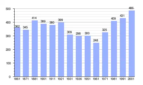 Gráfica de evolución demográfica de Moggio entre 1861 y 2001 |