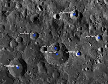 Por convención estos elementos son identificados en los mapas lunares poniendo la letra en el lado del punto medio del cráter que está más cercano a Mohorovičić.