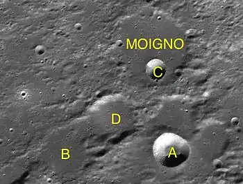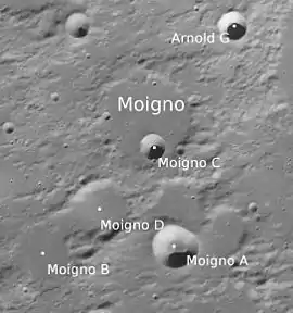 Moigno es un cráter de impactoque se encuentra en la parte norte de la cara visible de la Luna. Se encuentra justo al oeste del cráter Arnold, y al sureste de Neison.