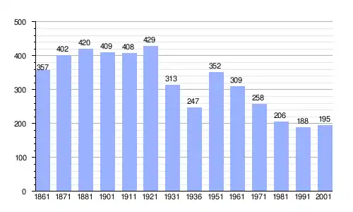 Gráfica de evolución demográfica de Moio de' Calvi entre 1861 y 2001 |