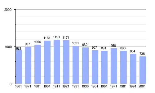 Gráfica de evolución demográfica de Molino dei Torti entre 1861 y 2001 |